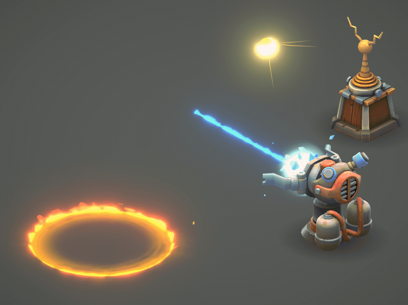 I created various realtime VFX in Unity to be used as effects for the towers and their projectiles. The fire uses a shader which I built using Shader Graph, and the "Ice Beam" uses the same shader as the fire but with different parameters.