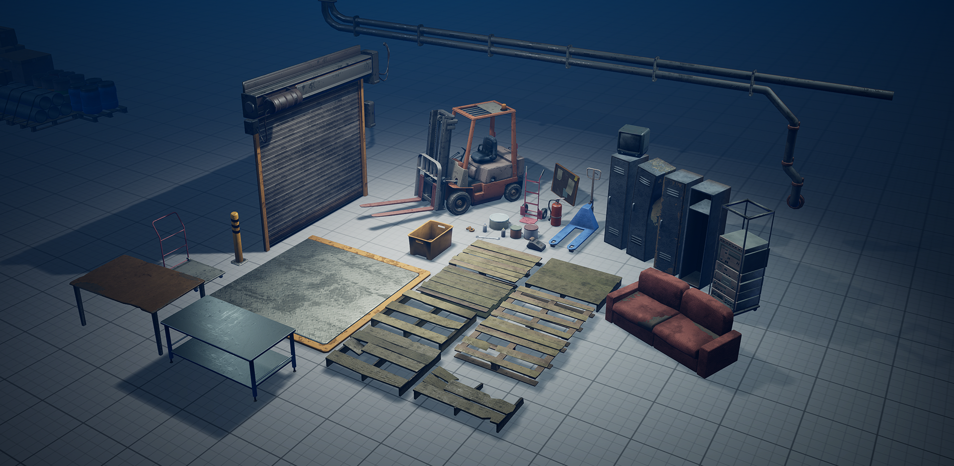 Warehouse shelf modular kit. I was tasked to build modular model kits so that set dressing and level design could be done flexibly inside Unreal Engine.